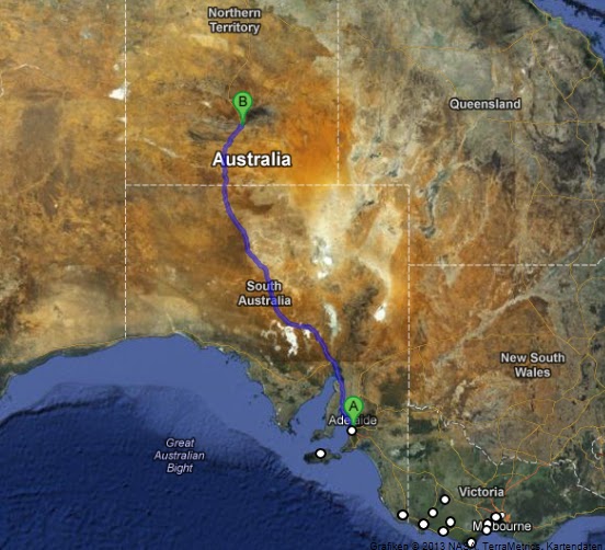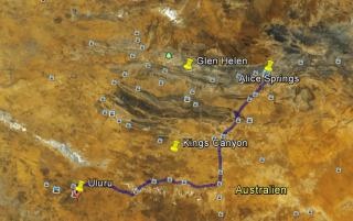 Der Flug hatte zwar eine halbe Stunde Verspätung, aber dann ging alles glatt. Shuttle vom Airport zum Hotel 15 Dollar p.P. ist zwar nicht billig, Taxi aber noch teurer. Hotel Aurora liegt mitten in der Stadt und hat ein gutes Lokal, so dass man abends nicht mehr durch die Gegend laufen muss. Hier in Alice Springs nicht so ratsam. Die Stadt ist nett, aber die Armut der Ureinwohner ist offensichtlich und ebenfalls das Alkoholproblem. Man hat direkt ein schlechtes Gewissen, wenn man in einem guten Zimmer wohnt, während nebenan im Flussbett die dahin vegetieren, denen das Land eigentlich gehört.