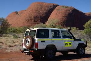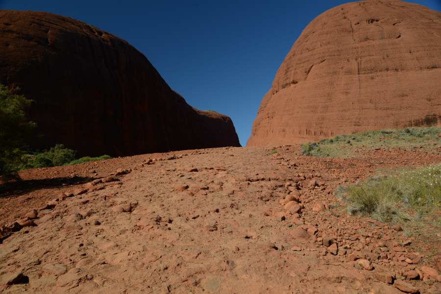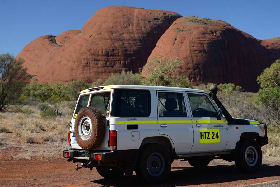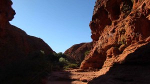 Wir sind um 3 Uhr in Yulara am Ayers Rock (500 km). Hier ist vielleicht ein Trubel. Zum Glück haben wir den nettesten Hotelteil des Resorts (Outback Pioneer). Die Luxusversionen sehen aus wie in einer Clubanlage am Mittelmeer. Uns ist das hier zu touristisch. Auch die Leute im Visitorcenter sind nicht wirklich entgegenkommend. Wir müssen lange auf unser Zimmer warten und bekommen zum Trost eine Flasche Wein. Das ist in Ordnung, hier sind sie noch nett. Hier ist es tagsüber 30 Grad und nachts sehr kalt. Ständig muss man etwas an- oder ausziehen. Der rote Uluru im Sonnenuntergang wie er schöner nicht mehr sein kann – bis auf die 1000 Leute, die um uns herum Party machen (mit Kühlbox und Stühlen). Warum müssen Italiener immer ohne Punkt und Komma laut alle auf einmal reden? Eine Frau macht während des Redens wenigsten noch schnell ohne richtig hinzusehen mit ihrem Ipad ein paar Fotos des leuchtenden Bergs – dann kann sie wenigstens zu Hause gucken, was sie verpasst hat. Dazu ein paar dicke essende und mit Sand werfende Kinder, die sich um einen IPod streiten machen die romantische Stimmung komplett. Kein Wunder, dass die Ureinwohner hier nicht so freundlich auf die Touristen zu sprechen sind. Black flies sind hier auch jede Menge. Haben uns erst mal mit Spray eingedeckt . Ich glaube, wir werden hier morgen versuchen die Haupthorden irgendwie zu umgehen. Auch abends ist hier „Cluburlaub“ – habe nur den Clubtanz vermisst. Das ruhige Lokal war ausgebucht – das kannten wir bisher gar nicht – wir haben für morgen sicherheitshalber reserviert. Der nächste Tag ist super – wir machen ein paar z.T. etwas anstrengende Wanderungen um den Uluru zwischen den Olgas. Das Spray gegen die Fliegen nützt gar nichts. Ich glaube, die ernähren sich davon. Ich kaufe mir ein Netz für den Kopf –ha ha – sieht albern aus, hilft aber und es laufen viele damit rum. Auch das Lunch (mangels Restaurants nehmen wir Sandwiches mit) teilen wir mit den Black Flies… Apropos Essen. Entweder man verhungert hier morgens, oder man wird arm (36 Dollar Frühstück pro Person!), oder man braucht Stunden, bis die im Cafe den Take Away Kaffee fertig haben oder man kauft wie wir für’s Frühstück im Supermarkt ein (19 Dollar incl. Wasser für 3 Tage). Kaffee gibt’s gratis auf dem Zimmer. Die Busladungen Leute haben wir erfolgreich umgangen. Wenn man etwas wartet, hat man immer wieder mal die schönsten Stellen für sich allein.