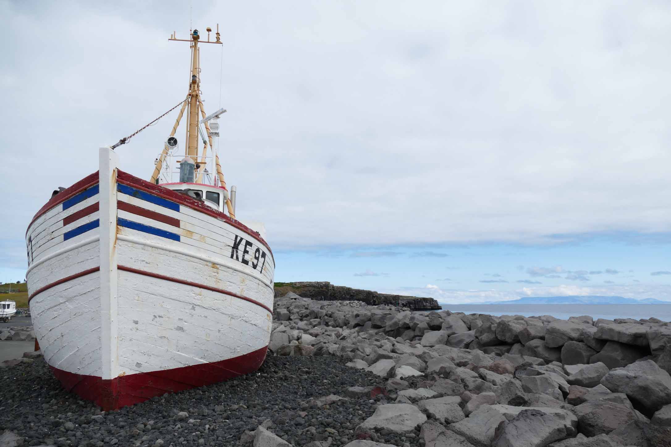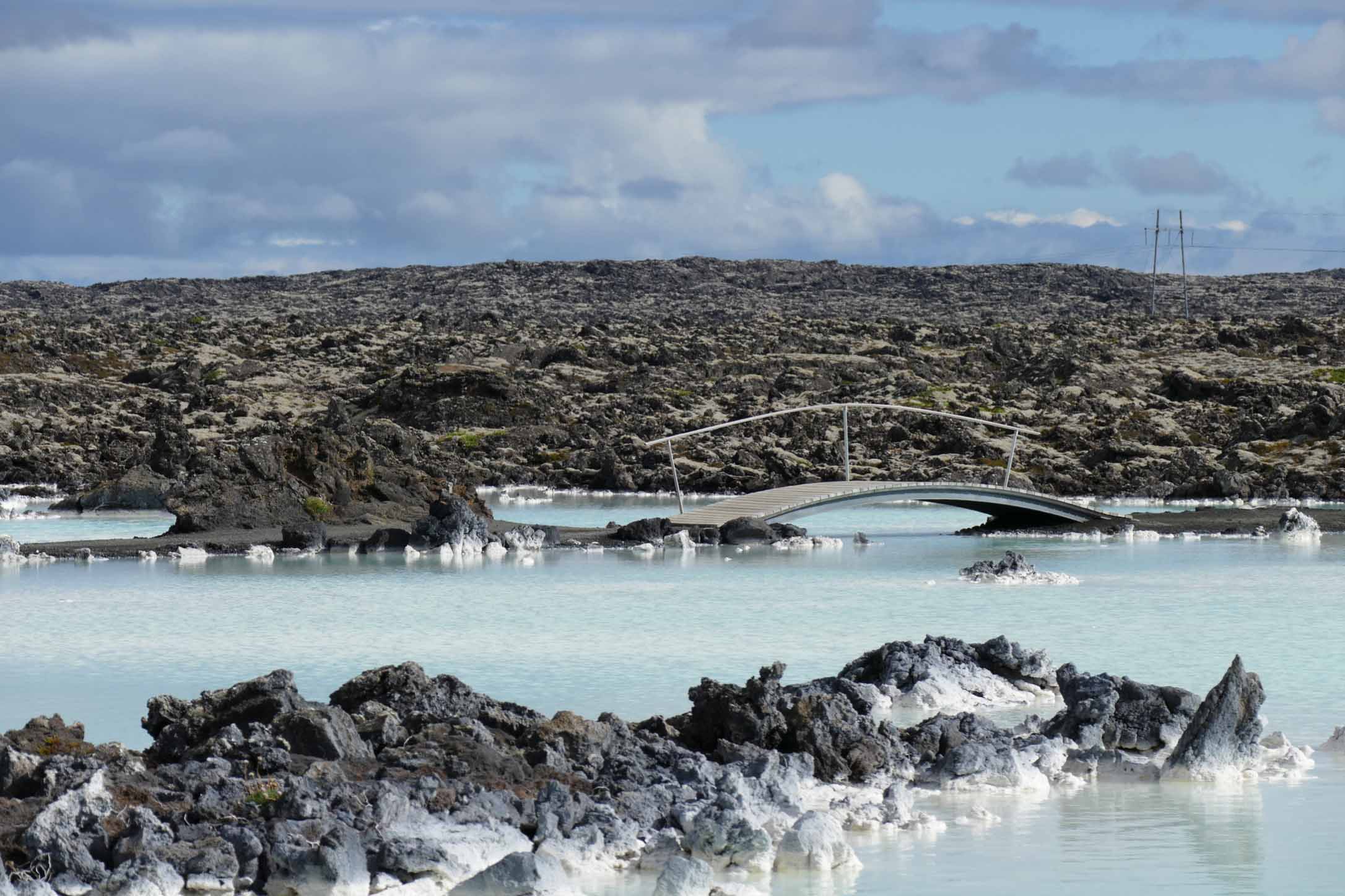 Letztes Frühstück im Hotel und Auschecken um 9:30 Uhr. Wir fahren in Richtung Reykjanes. Kurz vor Keflavik leiten uns Schilder zur blauen Lagune. Eine Reihe Busse und viele Autos stehen auf dem Parkplatz. Wir schlendern um die wirklich schön aussehenden türkisen Wasserflächen, die riecht zum Bad gehören. Die blaue Lagune ist kein natürliches Thermalbad, sondern eigentlich ein Abfallprodukt des Thermalkraftwerkes. Nachdem es mit über 200 Grad Celsius auf großer Tiefe hochgepumpt und zur Energiegewinnung genutzt wurde, hat man es -immer noch heiß- in die Lavafelder geleitet, wo dadurch ein See, die Bláa Lónid (blaue Lagune) entstand. Es besteht aus Meer und Süßwasser. Die blauweiße Farbe kommt von Kieselalgen. Nachdem früher die Einheimischen den See zum Baden genutzt haben, wurde später das Thermalbad gebaut. Wir betreten das Schwimmbad, vor dem eine lange Menschenschlange steht. Man kann im angeschlossenen Restaurant bis an das Wasser gehen und sich auch ohne Eintritt dort hin setzen. Mir fällt spontan das alte Lied „Die Wanne ist voll“ ein und verspüren wenig Lust, uns dazu zu gesellen. Außerdem haben wir nur eine Stunde Zeit und müssten dafür umgerechnet um die 50 Euro pro Person zahlen. Nein Danke! Wir begnügen uns mit einer sehr teuren Cola und fahren dann nach Keflavik. Wir tanken und bummeln noch etwas an der Promenade entlang, wo ein alter Fischkutter liegt und dann ist es auch Zeit, das Auto abzugeben. Wir lassen uns dann am Schalter noch die Mehrwertsteuer für unsere Einkäufe erstatten – geht ganz schnell und gehen dann zum Check In. Hier dauert es! Es sind nur 2 Schalter geöffnet. An einem diskutiert ein Pärchen mit 2 Riesenkartons mit Fahrrädern geschlagene 30 Minuten über die Modalitäten und Preise des Gepäcks, am zweiten kommen ständig „Sagaclass“ (so was wie Business) Kunden, die Vortritt haben. Vor uns stehen nur 4 weitere Passagiere, aber es geht nicht weiter. Die Stimmung wird immer gereizter und die Schlange hinter uns immer länger. Endlich werden 3 weitere Schalter geöffnet. Jetzt geht es ganz schnell, da wir schon online eingecheckt haben und nur noch das Gepäck aufgeben müssen. Auch die Securityschranke überwinden wir zügig und haben sogar noch Zeit für einen kurzen Mittagssnack (Essen haben wir im Flieger ja nicht mit gebucht). Im Duty Free erstehen wir noch Brennivin und dunkles Brot aus dem Thermalofen und füllen unsere Wasserflaschen für den Flug. Vor dem Gate gibt es kaum Sitzplätze und der Flug hat 15 Minuten Verspätung – wieder stehen wir in der Schlange. Der Flug selbst ist sehr angenehm. Der dritte Platz in unserer Reihe bleibt frei, so dass wir uns ausbreiten können. Kaum habe ich die restlichen Islandfilme, die ich auf dem Hinflug nicht geschafft habe, angeschaut, sind wir auch schon in Frankfurt. Hier ist es dunkel (obwohl erst 21:30 Uhr) und es regnet. Das Gepäck kommt sehr schnell und eigentlich könnten wir den Zug um 10:25 Uhr bekommen – wenn denn der Code für das Fahrticket, das wir noch ziehen müssen, klappen würde! Genervt steigen wir ohne Ticket, nur mit dem Zahlungsbeleg in den Zug – der nächste fährt eine Stunde später! Auch gelingt es uns nicht, ein Online Ticket aufs Handy zu bekommen. Wir geben auf und hoffen auf einen gnädigen Schaffner. Den haben wir wirklich. Er schaut auf unsere Quittung, überlegt einen Moment und sagt dann, er habe uns hier nicht gesehen. Vielen Dank an den netten Beamten! So sind wir um 23.18 Uhr in Siegburg, wo unser Sohn uns zu einer halbwegs zivilen Zeit abholt.
