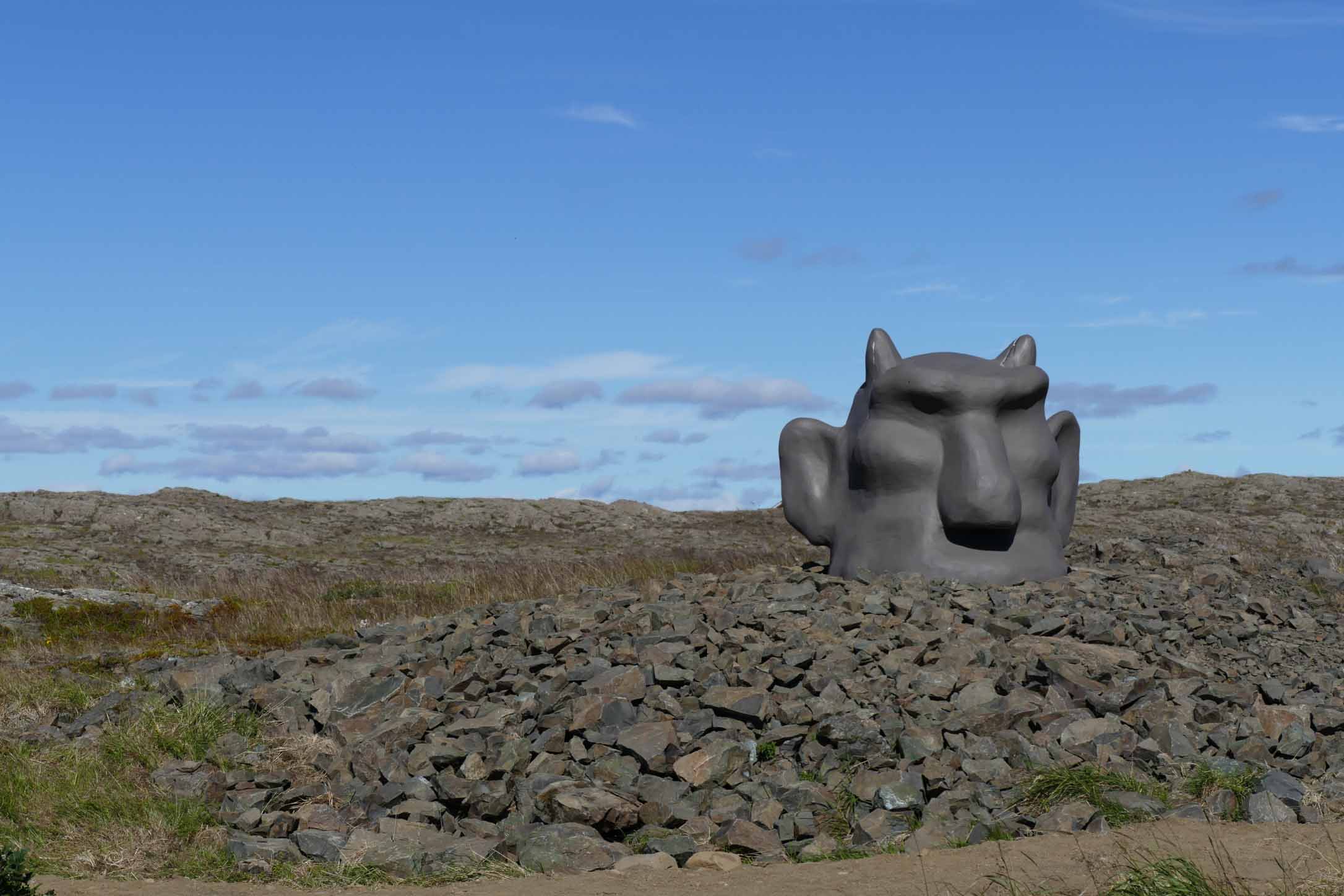 Heute, am Sonntag wollen wir die zweite Hochlandtour machen. Wir fahren erst mal in Richtung Norden die 1 hoch und dann am Hvalfjördur, einem Fjord im Norden Islands, vorbei. Man könnte durch einen Tunnel den Weg abkürzen, aber wir entscheiden uns dafür, den Fjord umfahren. ganz am Ende suchen wir den Glymor Wasserfall. Nach ein paar Fehlversuchen finden wir den Zugang, stellen aber fest, dass es ein 5,5 km langer Roundtrip ist mit über 700 Höhenmetern. Dafür sind wir aber heute nicht gut genug vorbereitet (zu wenig Wasser, Essen) und auch schon zu spät dran, um den Rest unseres Tagesvorhabens noch zu schaffen. Da wir schon so viele Wasserfälle gesehen haben, canceln wir diesen und fahren weiter. Auf der Nordseite des Fjordes folgen wir der 520 Richtung Reykkholt. In Fossum machen wir Pause auf der schönen Terrasse des Rock’n Troll Cafés und schlendern danach den Weg mit den Trollen und Trollgeschichten hinter dem Haus entlang. Für Kinder sicher auch ganz witzig. Wir erfahren so einiges über die Trolle Islands und die Sagen, die man sich erzählt.