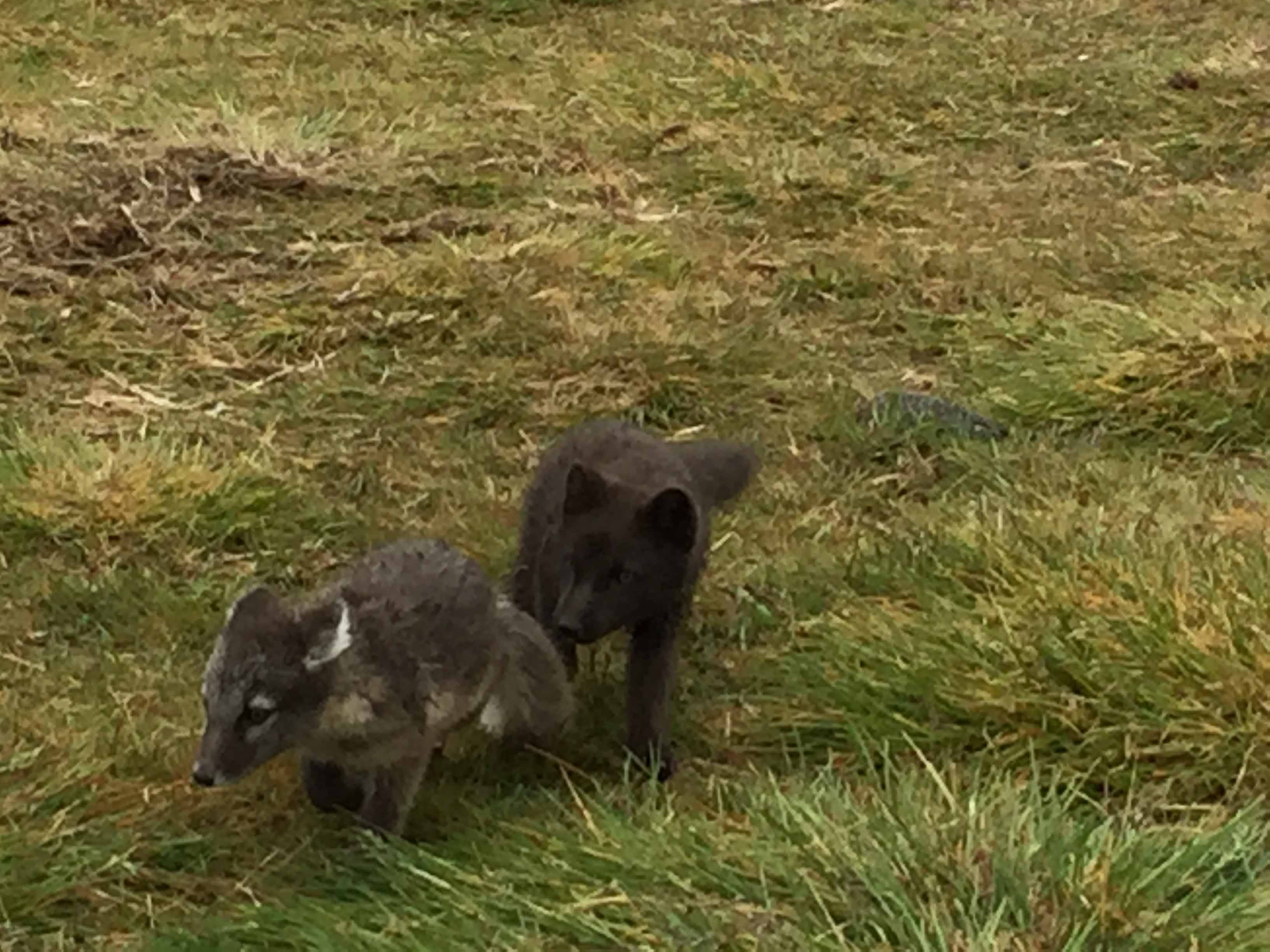 Das erste Mal halten wir am Hof Mödrudalur, dem höchsten Hof Islands. Außer einem gemütlichen Cafe gibt es noch eine kleine Kirche zu sehen und Polarfüchse, die offenbar an Besucher gewöhnt sich und ganz unbefangen in den Wiesen spielen.