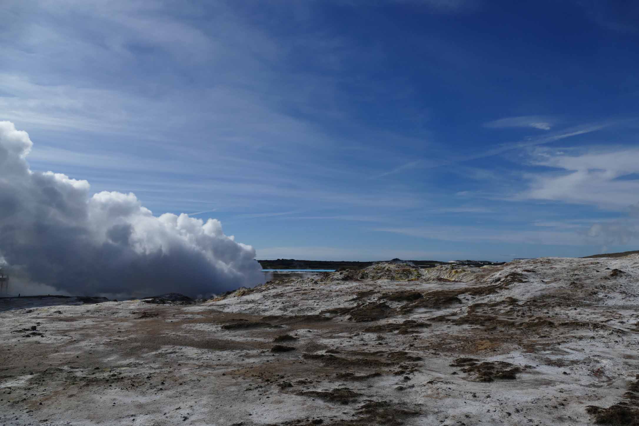 Ab jetzt sind wir mobil. Wir machen erst mal eine Rundfahrt über die Halbinsel Reykjanes. Es geht durch Hafnarfjördur, vorbei an imposanten Lavafelfern zum See Kleifartvatn, der malerisch in der Sonne liegt. Weiter zu Thermalgebiet bei Krysuvík. An der Küste weiter dann durch Grindavik zum Hochtemperaturgebiet Gunahver, wo riesige Fumarolen in die Luft Stegen. Das diese aus Meerwasser bestehen, merkt man daran, dass die sich auf der Haut ablagernde Feuchtigkeit salzig ist. Und es riecht sehr nach Schwefel.