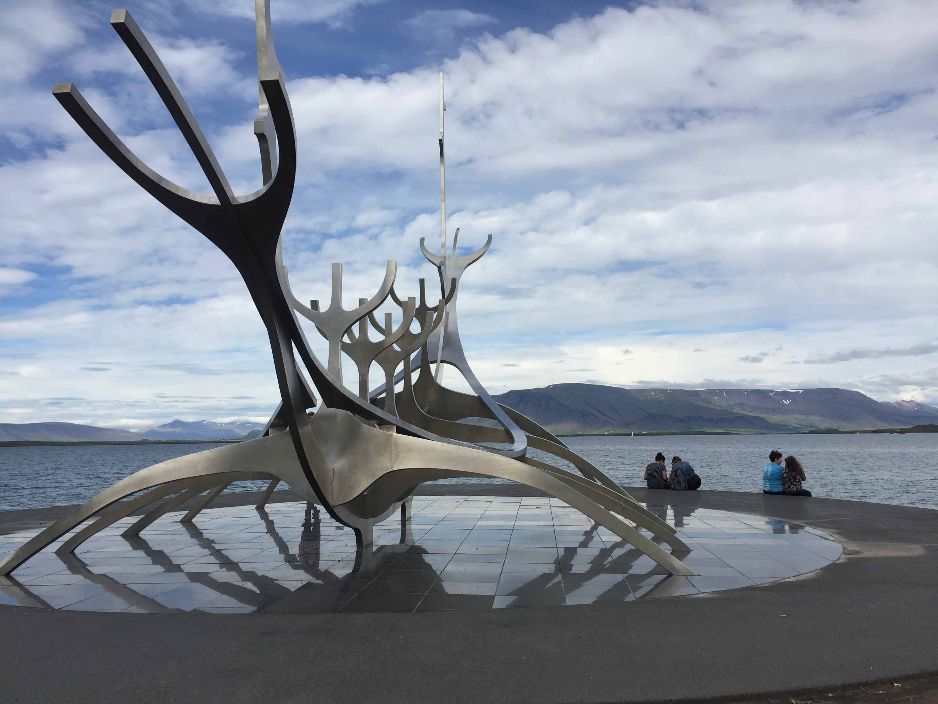 Am Donnerstagmorgen erkunden wir Reykjavik allein. Erst mal ziehen wir um in unser privat gebuchtes Hotel, dem Foss Hotel Raudara. Da die Zimmer noch nicht frei sind, stellen wir das Gepäck ab und gehen um 12 Uhr in ein Orgel-Konzert, welches in der berühmten Kirche, der Halgrimskirkja, benannt nach dem Dichter Hallgrímur Pétursson, der um 1656 auch die isländischen Passionshymnen verfasste. Sie überragt mit ihrem markanten Turm alle Gebäude und ist praktisch das Wahrzeichen von Reykjavik. Hier treffen wir nochmal einen Teil der Reisegruppe, deren Flug erst heute Abend um 23 Uhr geht. Sie begegnen uns noch einige Male an diesem Tag. Wir bummeln durch die Stadt, essen in „unserem“ Café Uno etwas zu Mittag, machen ein paar Souvenireinkäufe und genießen die Sonne, die sich heute wieder reichlich zeigt.