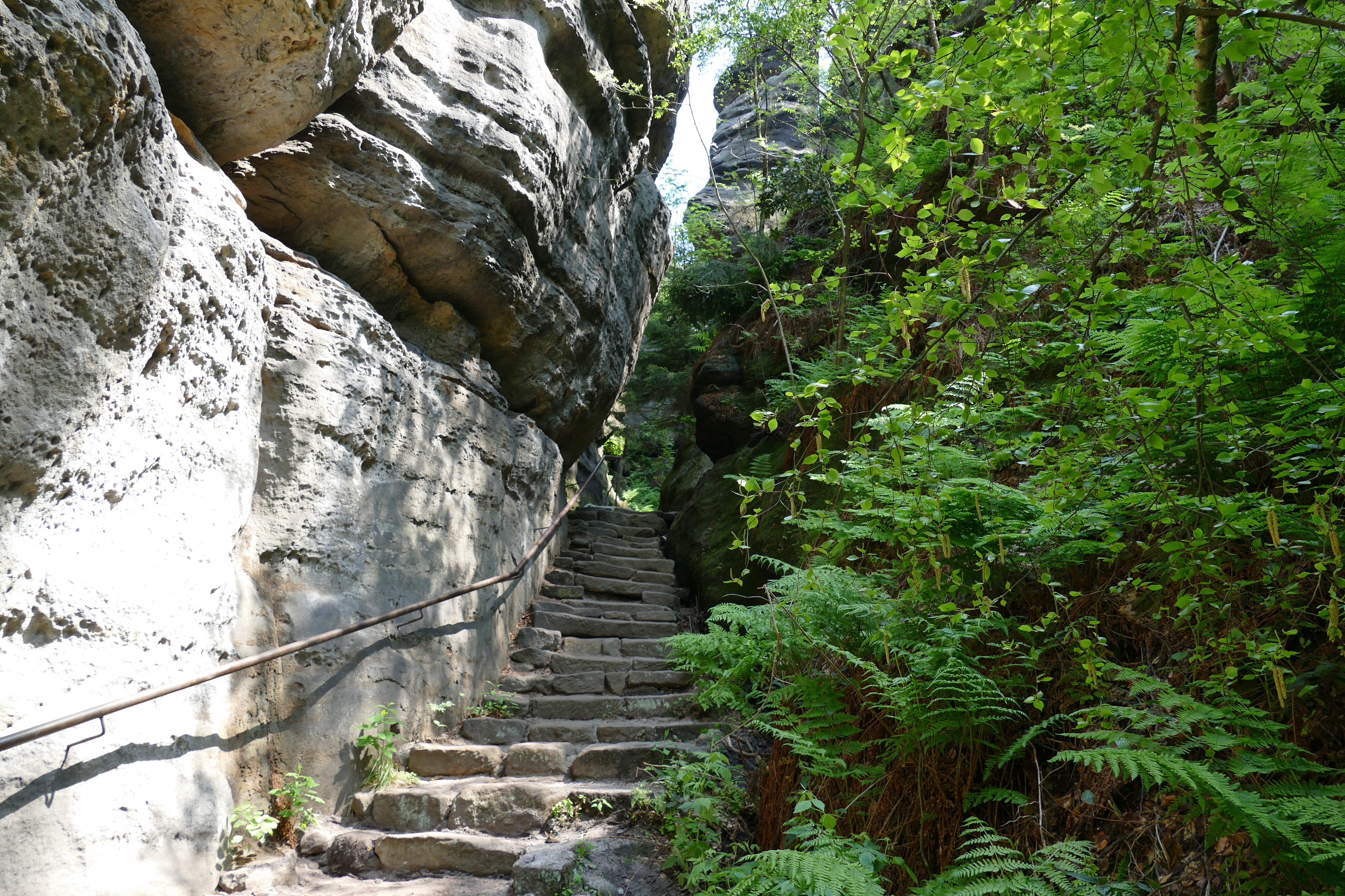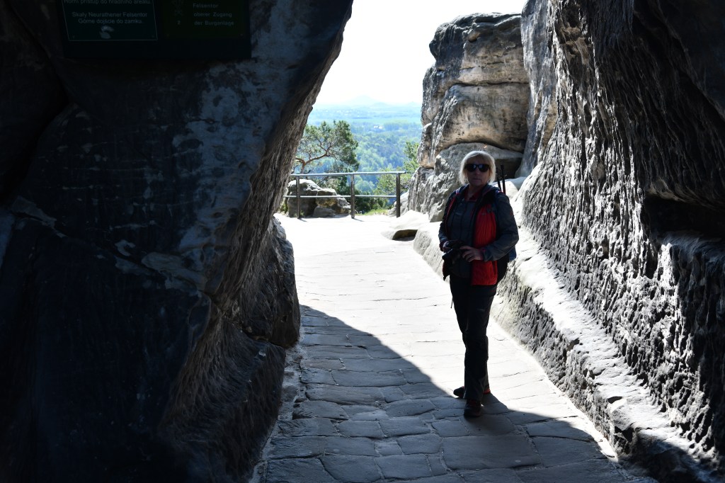 Wir machen noch einen Abstecher zum Kirnitzschtal, durch das eine Straßenbahn die Leute zum Lichtenhainer Wasserfall bringt. Dieser ist nicht echt und wird ab und zu angestellt. Im letzten Urlaub sind wir mit der Bahn gefahren und dann zum „Kuhstall“ gewandert. Diesmal haben wir nur Zeit für eine kleine Stippvisite. Hier ist so viel los, dass wir keinen Parkplatz finden, so dass wir diesmal ohne Fotos weiterfahren.