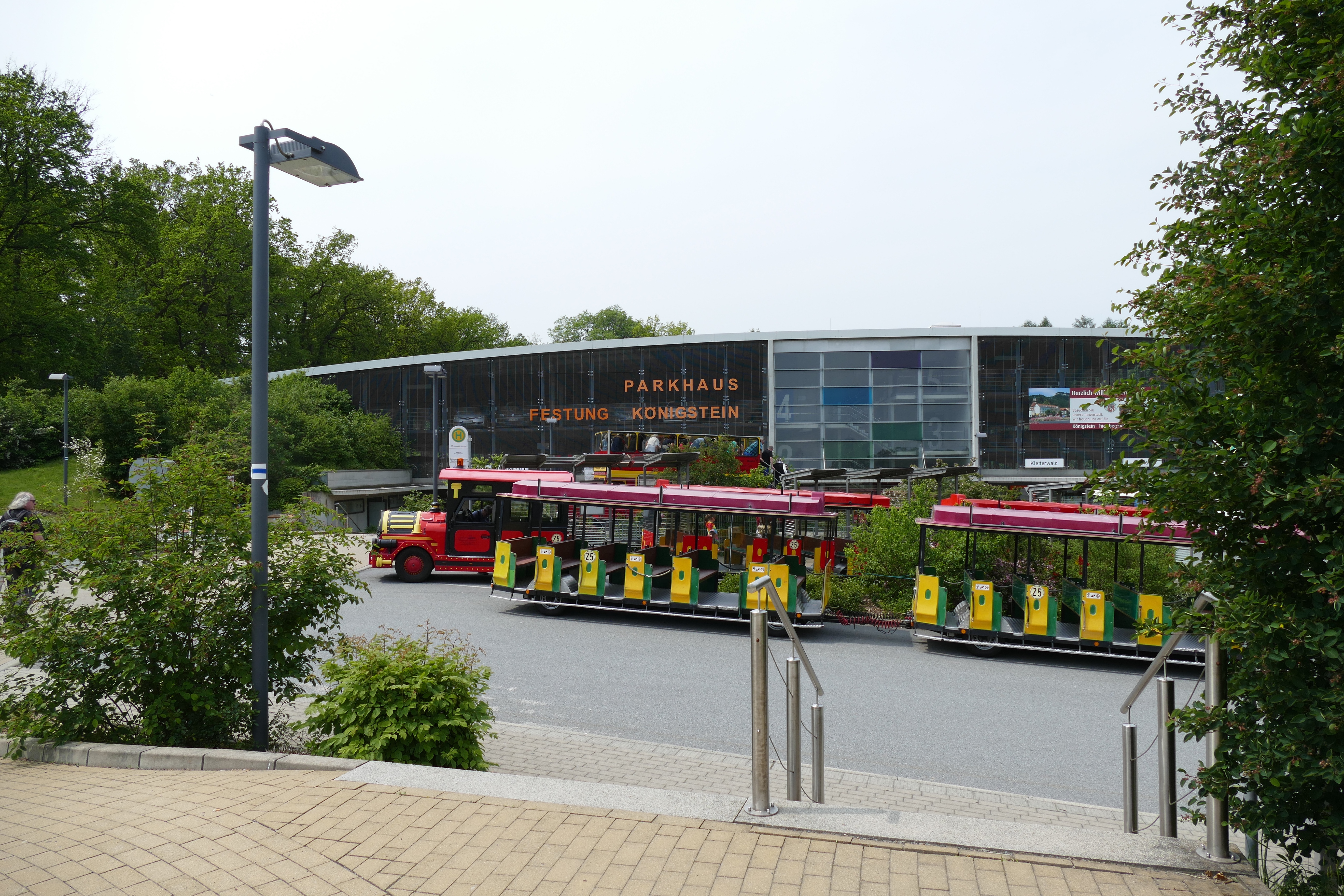 Auch heute auf der Festung Königstein sind wir wieder fast allein. Wegen meines defekten Knies nehmen wir vom Parkhaus aus die „Senioren-Kinder- Bimmelbahn“ ( bei dem kurzen Stück wäre das aber auch nicht nötig gewesen).