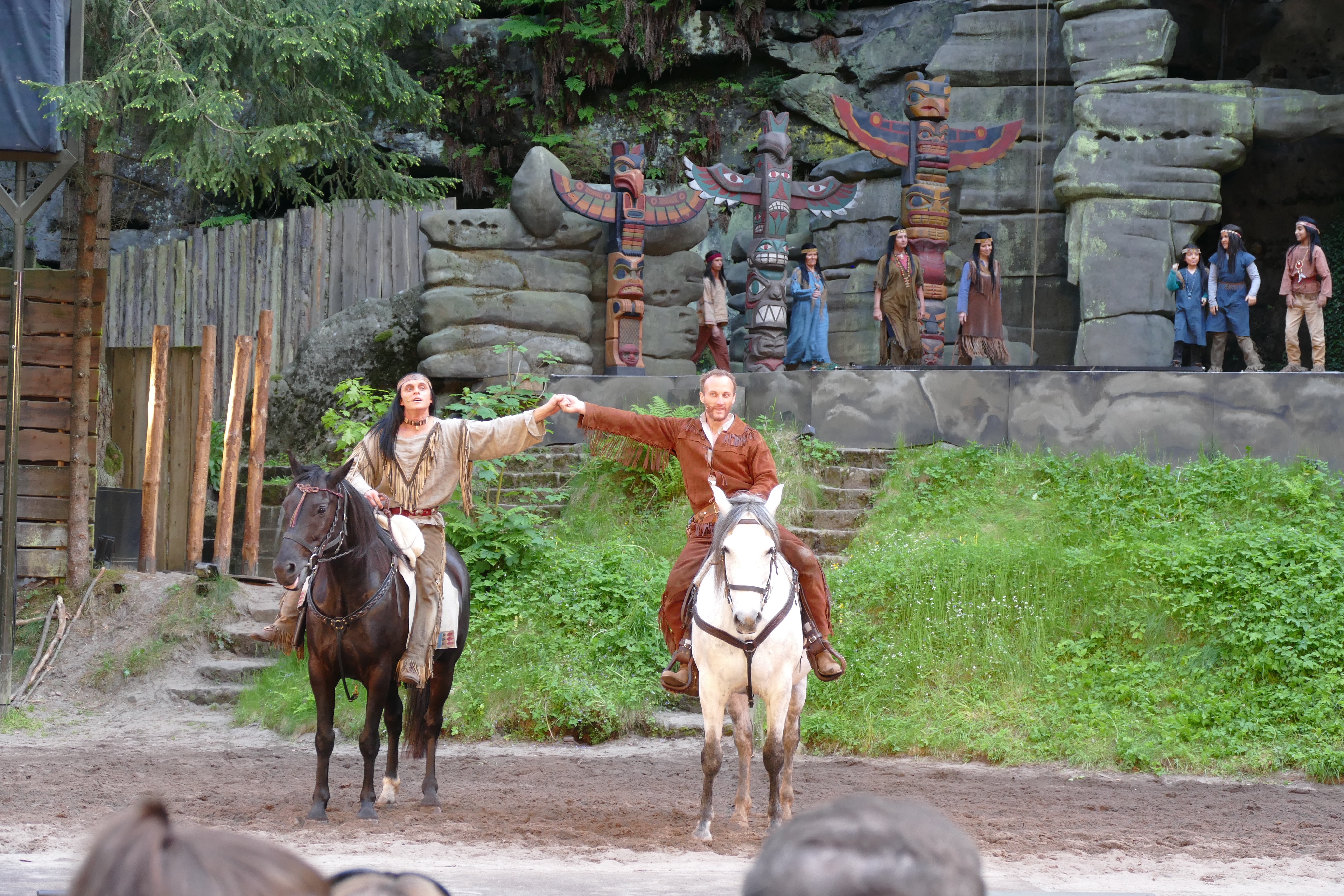 Wir finden die Aufführung sehr gelungen – echte Felsen, echte Pferde, echtes Feuer, gute Schauspieler. Auch wenn hier Nscho-Tschi (für unwissende: Winnetous Schwester) auch sterben muss. Mario Adorf hat im Originalfilm den Makel nie verloren, als Gauner Santer die Indianerin erschossen zu haben – auch hier gibt es nur verhaltenen Applaus für den Schauspieler, aber wenigstens wird er nicht ausgebuht…