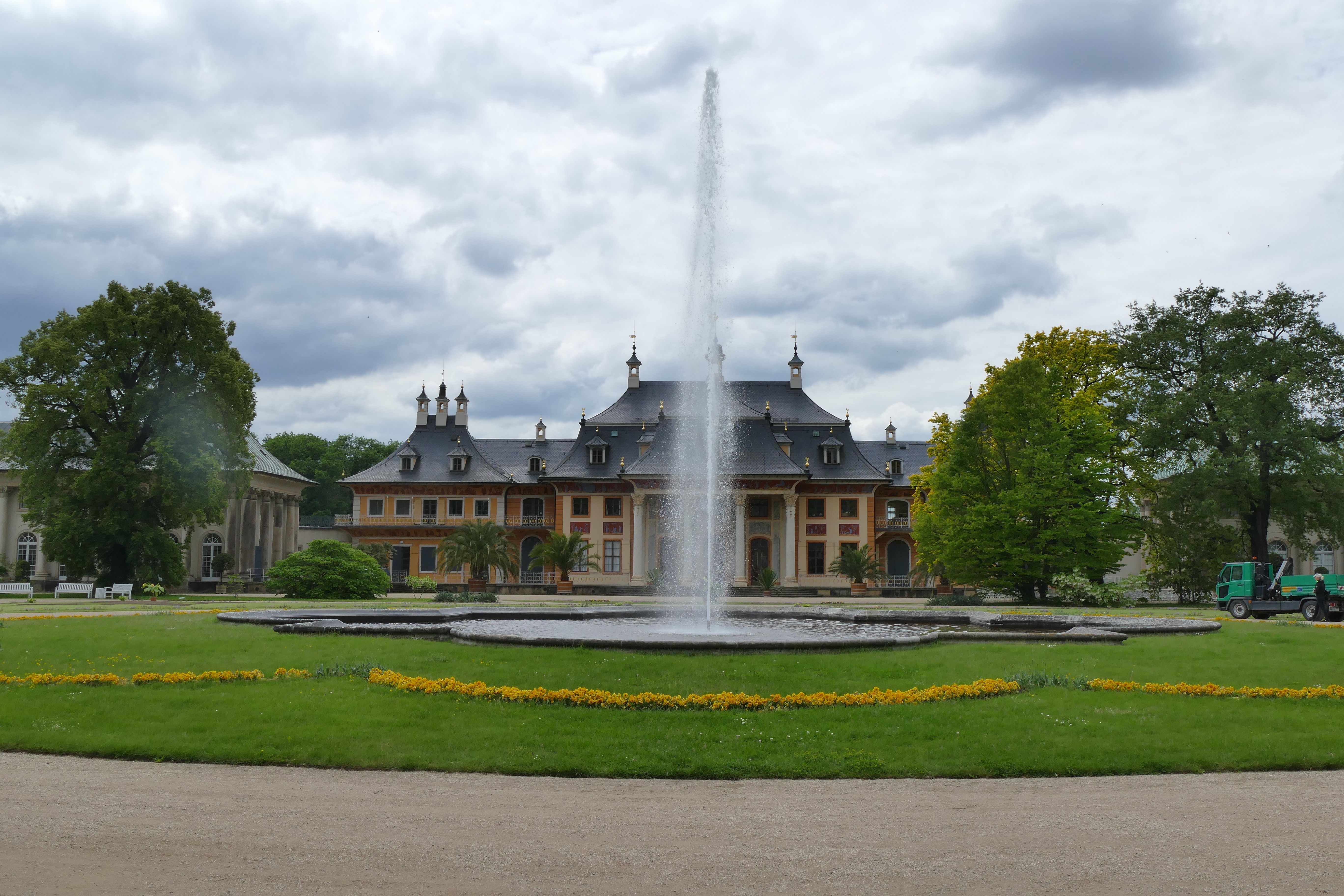 In Schloss Pillnitz angekommen wollen wir eigentlich im Restaurant Elbhotel zu Mittag essen. Wir wollen gerade die Treppe hoch, als die Reisegruppe mit der alten Schachtel vom Schiff um die Ecke biegt – nein, lieber doch nicht!!!! Wir laufen ein Stück in den Ort und finden ein schönes Café, in dem man auch Kleinigkeiten zu Mittag bekommt (Café Wimmer).