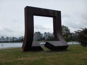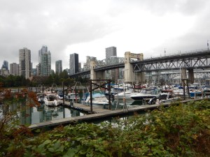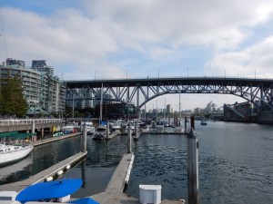Wir haben heute, am letzten Tag noch ein paar Aktivitäten vor. Zu Fuß machen wir uns noch einmal zur English Bay auf, laufen auf dem Seawall bis False Creek. Das ist ein schmaler, zwei Kilometer langer Meeresarm zwischen dem Stadtzentrum und der Burrard-Halbinsel. Drei Brücken überspannen das Wasser, die Burrard Street Bridge, die Granville Street Bridge und die Cambie Bridge.