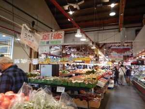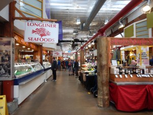 Das bekannteste Gebäude ist die große Markthalle, in der man ab 9 Uhr morgens alles kaufen kann, was es an Lebensmitteln gibt. Frisches Ost, Gemüse, Brot, Fisch, Fleisch, Süßes, und vieles mehr. Um die Markthalle herum findet man Restaurants, Theater und Souvenirläden. Ein lebhaftes Treiben herrscht hier, eine Mischung aus Einheimischen und Besuchern.