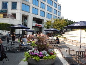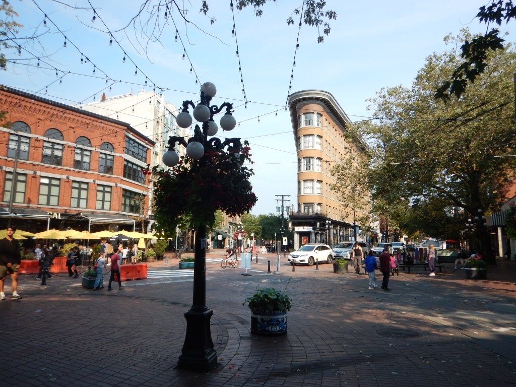 Beim Abendessen genießen wir die Sonne und schauen dem Treiben in Gastown zu.