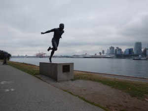 Hier steht auch die fotogene Skulptur des kanadischen Sprinters Harry Jerome, der in den 1960er Jahren bei den olympischen Spielen eine Bronzemedaille gewonnen kann.
