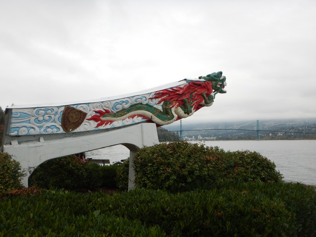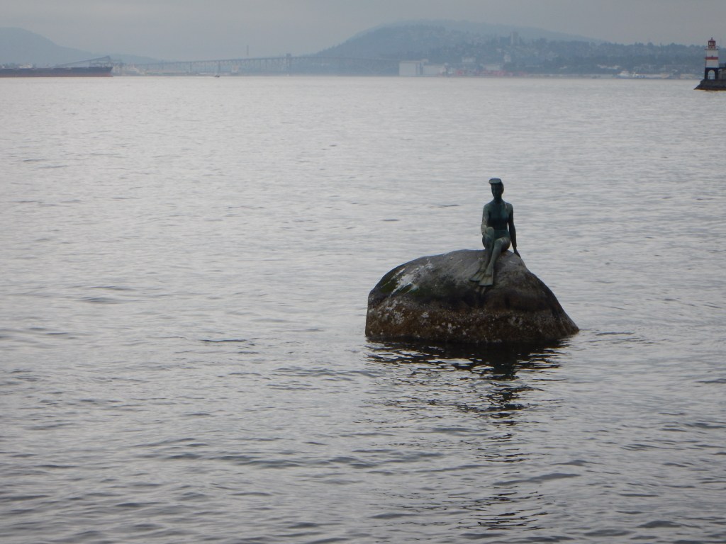 Wir fahren weiter um die Landzunge herum bis zum Brockton Point Light House, einem kleinen Leuchtturm, von wo aus man die auf einem Felsen sitzende Statue „Girl in a Wetsuit“ sehen kann. Sie ist eine der Kopenhagener Meerjungfrau ähnliche Bronze Skulptur von 1972, die jedoch den hiesigen Moralvorstellungen geschuldet mit einem engen Neoprenanzug bekleidet ist.