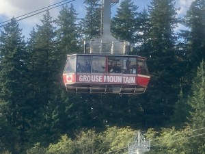 Leider ist es am nächsten Morgen ziemlich bewölkt. Dennoch kaufen wir Online Tickets für „Grouse Mountain“. Vor einigen Jahren waren wir schon einmal da, aber der Preis hat sich jetzt mehr als verdoppelt. 70$ zahlen wir pro Person. Allerdings ist der Shuttle ab Canada Place inclusive. Der Service ist aber -vielleicht wegen Nebensaison? – nicht sehr gut. Wir warten 20 Minuten auf den Shuttle, und dann kommt ein so kleiner Minibus, dass zwei der Wartenden nicht mitkommen können. Und zurück verkehren die Busse nicht laut Fahrplan, sondern wir warten mehr als eine Stunde.
