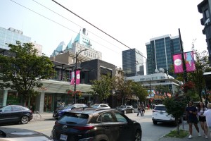 Wir ziehen uns erst mal temperaturgerecht an. Danach spazieren wir die Robson Street hinunter, die als edle Shoppingmeile bekannt ist. Ich erstehe einen kleinen Rucksack als Ersatz für meinen, der mir in Ketchikan kaputt gegangen ist.
