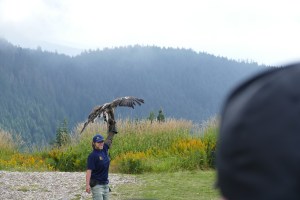 Wir schauen uns die Lumberjackshow an, die Raubvögelpräsentation und die Grizzlies. Es ist ein riesiger Unterschied, die Bären hier in Gefangenschaft zu sehen zu der Erfahrung, die wir letzte Woche in Alaska machen durften. Die vielen fotografierenden Menschen vor dem Zaun ergeben ein makabres Bild.
