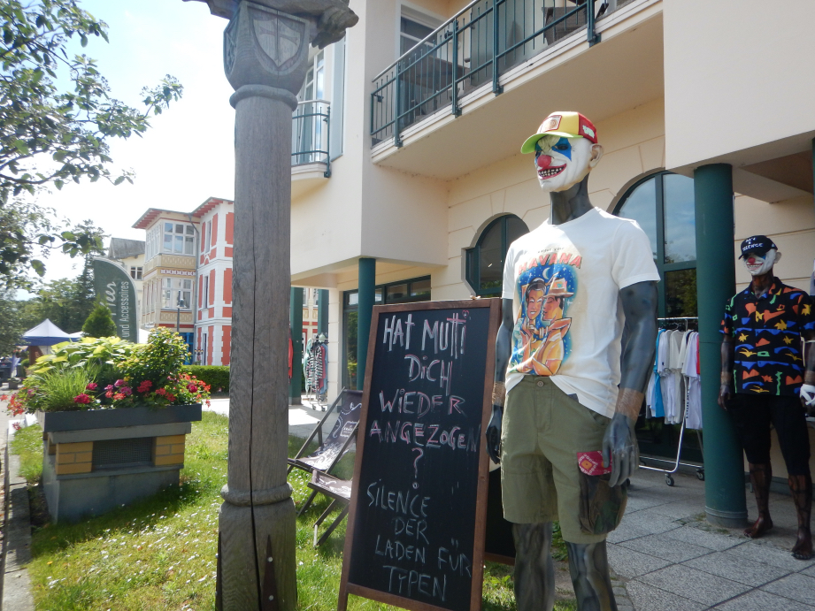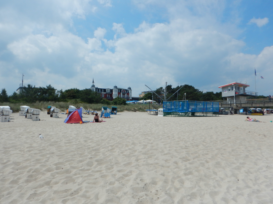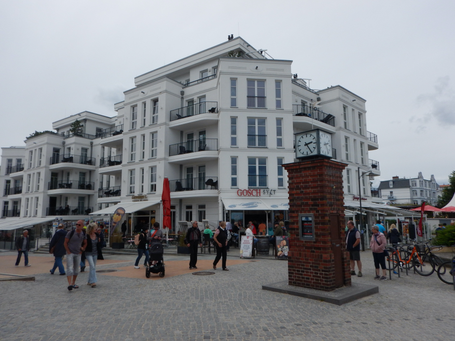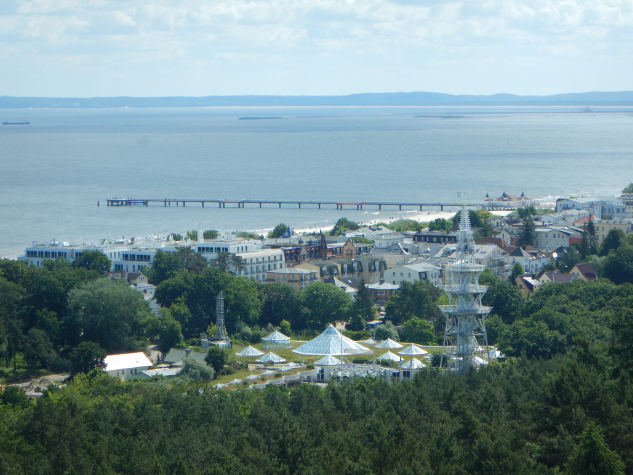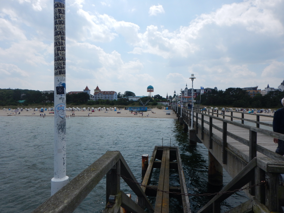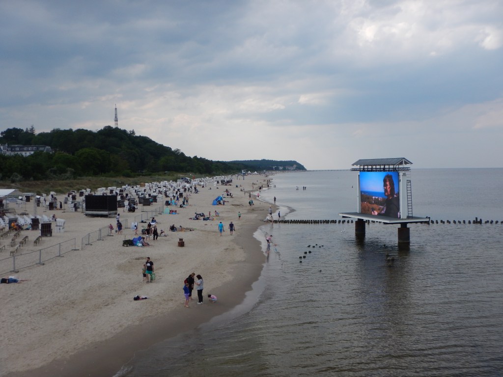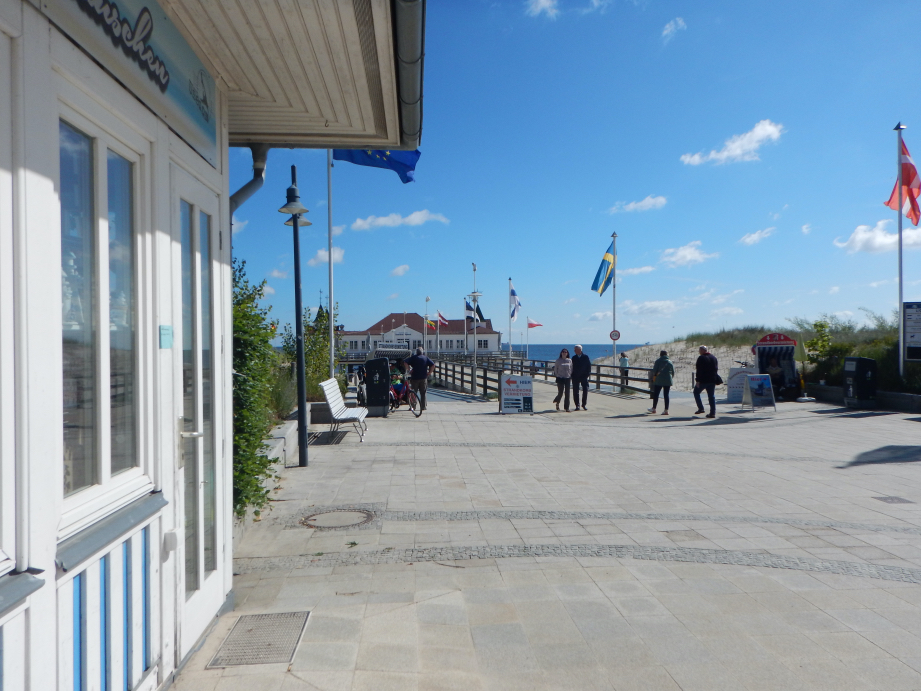 Auch hier gibt es den übliche Anblick wie in den anderen Bädern, nette Restaurants und Läden reihen sich aneinander, der Strand mit den bunten Körben leuchtet schneeweiß und die Seebrücke ragt 285m weit in die Ostsee hinaus – hier allerdings unbewirtschaftet. Lediglich ein Anlegesteg der Adler-Schiffe ist hier zu finden und eine phantastische Aussicht auf die Bäderarchitektur des Ortes.