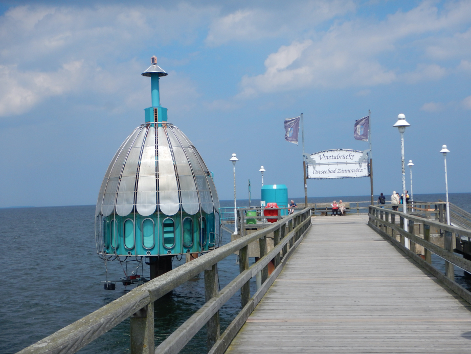 Von Rügen, unserem letzten Ziel, bis Usedom sind es nur knapp 160 km. Unser nächstes Domizil ist Heringsdorf, wo wir eine Ferienwohnung im alten Kurhotel gebucht haben. Da wir dort erst um 14 Uhr einchecken können, wollen wir einen Zwischenstopp in Zinnowitz, dem ersten der Seebäder machen.