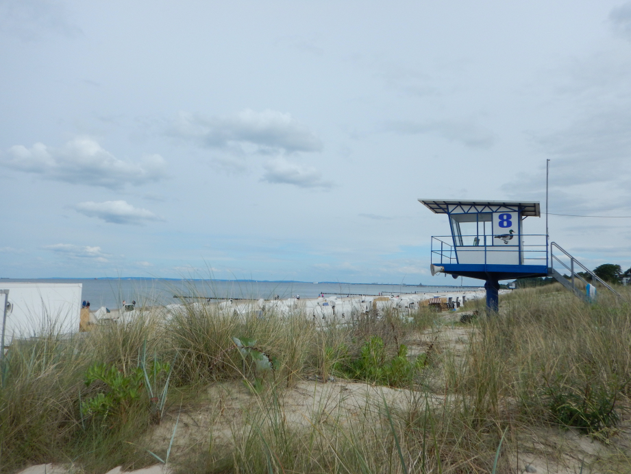 Am Nachmittag mieten wir uns einmal einen Strandkorb, den man stundenweise buchen kann. Zum Baden ist es uns zwar zu kalt (Luft 16° / Wasser 18°), aber man sitzt gemütlich mit einem Blick auf die Ostsee.