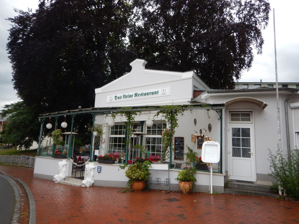 Man kann hier auch Frühstück oder Halbpension buchen, aber der Speisesaal ist ungemütlich im Keller. Wir ziehen es vor, uns in der Bäckerei an der Seebrücke unser Frühstück zu holen (sehr leckere Backwaren und belegte Brötchen). Zum Abendessen kaufen wir ein paar mal Fischbrötchen im Kiosk daneben. Dort kann man im Außenbereich zwischen den Gebäuden sitzen oder das Essen mitnehmen. Gemütlicher ist es ganz hinten auf der Seebrücke in der Pizzeria mit Blick aufs Wasser.